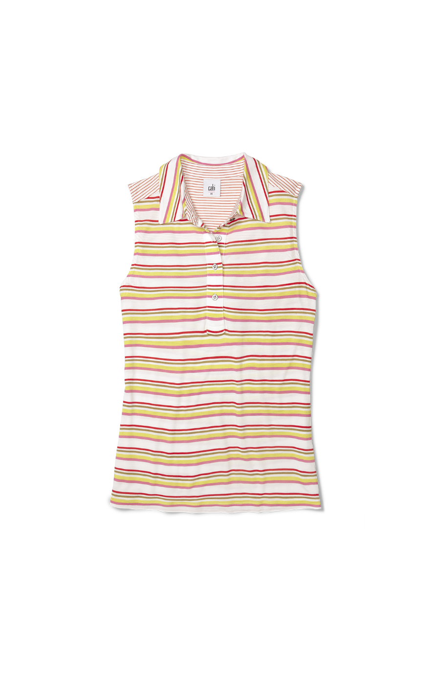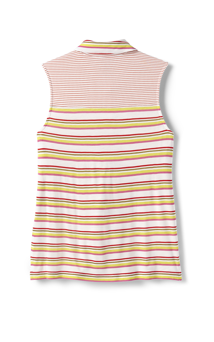 What’s even better than a hole in one? The Tee Up Tee! This electric striped sleeveless top features hues of white, pink, red, chartreuse, and olive, with a Henley collar and button placket. The perfect swing into laid-back, fashion-forward fun.
