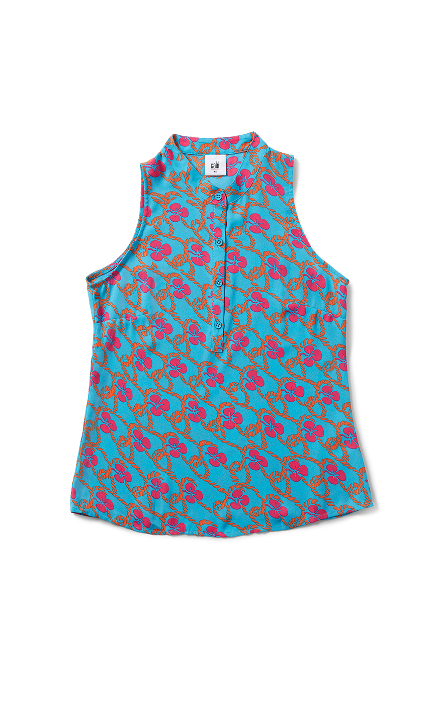 Floral flair meets nautical charm in the Tempo Top, a vibrant racerback blouse featuring hues of bright aqua, neon pink, and orange. This design has a banded neckline with a Henley placket to ensure you’re always on trend. Let this upbeat top set the pace this season!