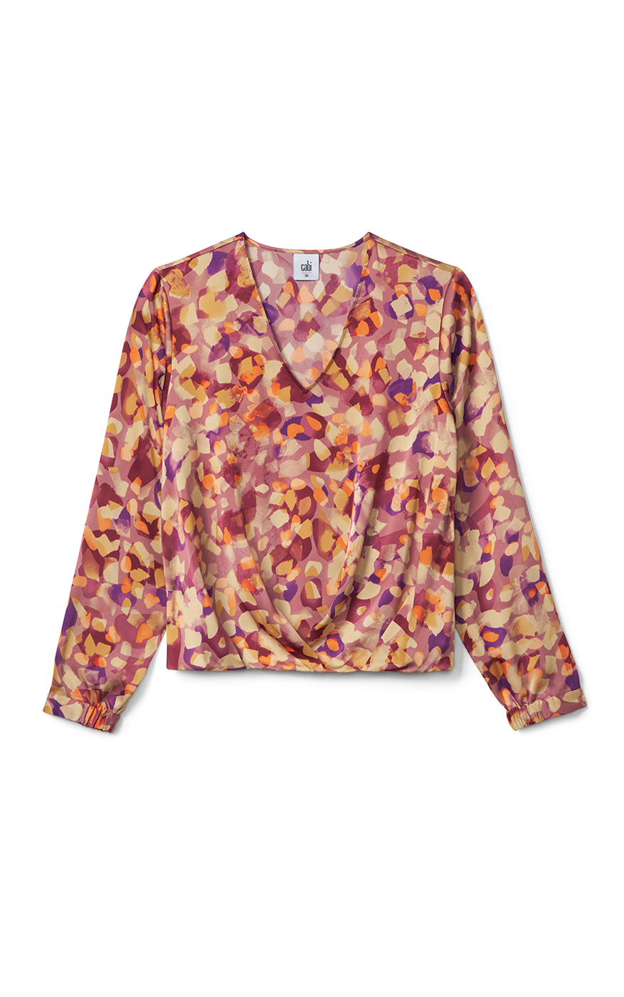 - Easy fit, V-neckline, tucks at the front elastic hem, long sleeves with elastic cuffs, high-low hem is longer in back, hits at the hips Matte satin