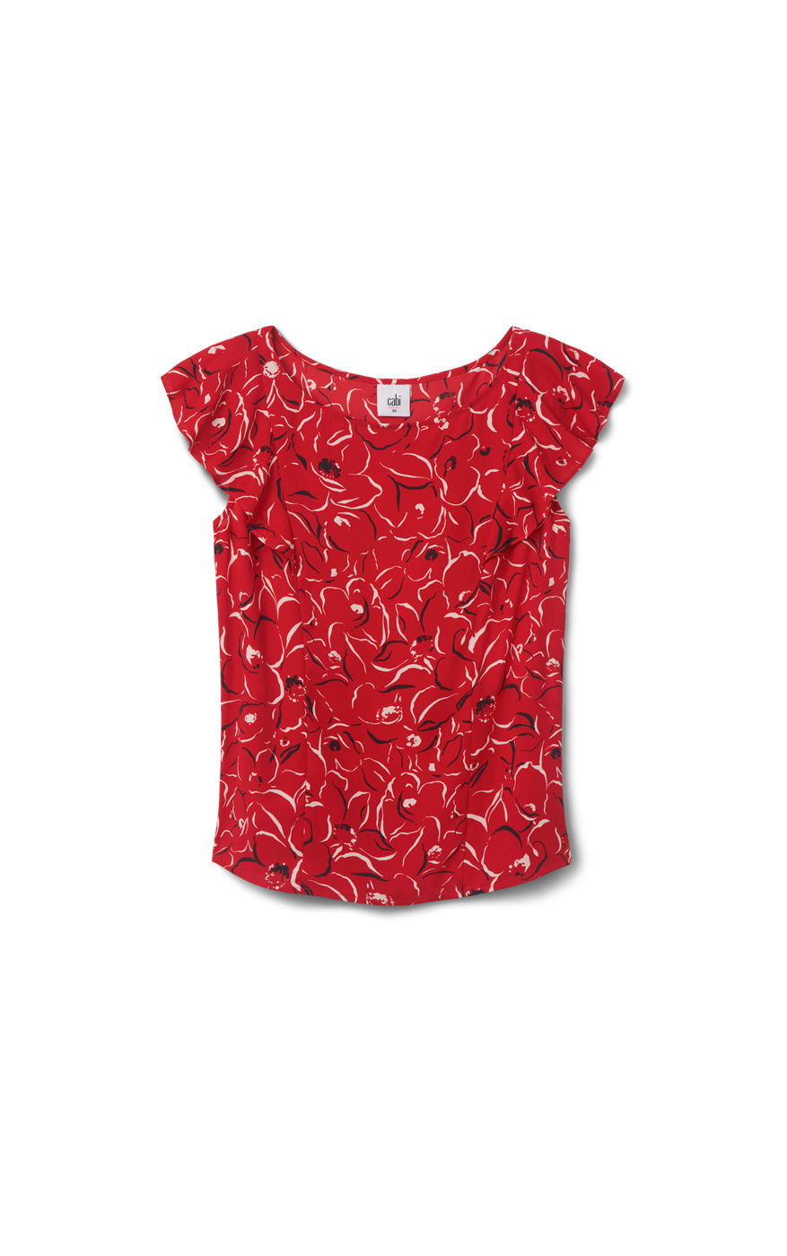 The soft poly crepe fabric drapes beautifully while the delicate floral print adds a touch of vintage-inspired elegance. Ruffled cap sleeves and "blavy" trim create flattering details, and the relaxed fit works wonderfully with navy or black pieces in your wardrobe—giving you a versatile option that supports your everyday look.